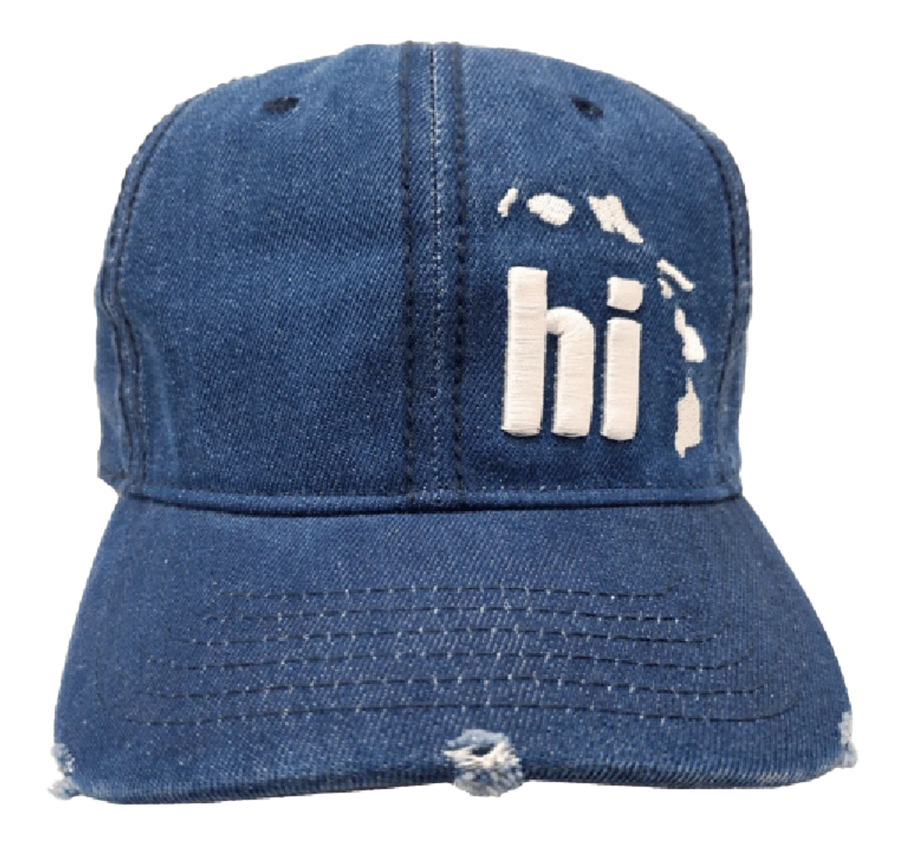 Vintage washed cotton twill frayed bill cap with embroidered Hawaiian design.