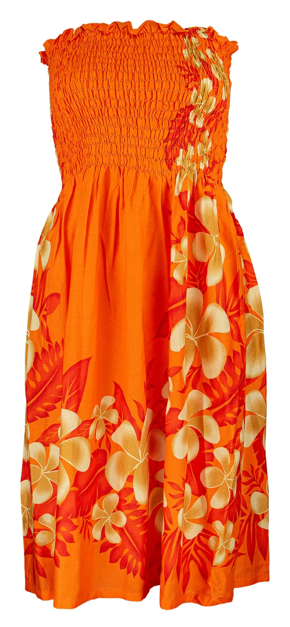 Ladies Short Elastic Tube Dress – Plumerias: Orange