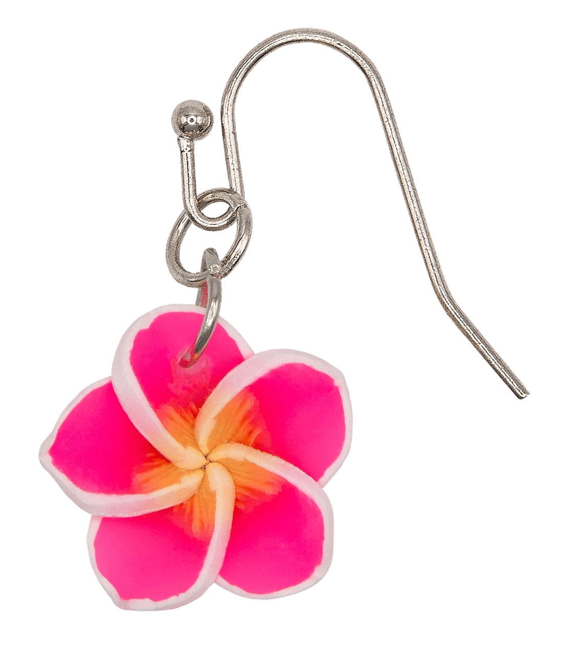 Handcrafted clay earring in the shape of a Plumeria flower